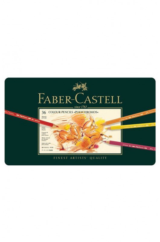 Polychromos artists' pencils are valued internationally by professionals and semi-professionals for their unsurpassed quality. The high quality standards of the Polychromos colored pencils shine through, whether they are used for graphics, artistic free style or for the exact rendition of plans. Thick 3.8 mm lead Soft, vibrant color laydown High-quality acid-free pigments in bright colors, unsurpassed lightfastness Water-resistant and smudgeproof High break resistance due to Secural bonding process (SV) 36 pencils in a metal tin Available as individual pencils or in various assorted sets. Includes White, Cream, Light yellow glaze, Cadmium yellow, Dark chrome yellow, Cadmium orange, Dark cadmium orange, Pale geranium lake, Deep scarlet red, Middle cadmium red, Dark red, Magenta, Rose carmine, Middle purple pink, Mauve, Dark indigo, Helioblue-reddish, Ultramarine, Light ultramarine, Phthalo blue, Cobalt turqoise, Cobalt green, Dark phthalo green, Emerald green, Light green, Leaf green, Earth green yellowish, Pompeian red, Venetian red, Burnt ochre, Dark Naples ochre, Raw umber, Walnut brown, Warm grey V, Warm grey II, BlackPolychromos artists' pencils are valued internationally by professionals and semi-professionals for their unsurpassed quality. The high quality standards of the Polychromos colored pencils shine through, whether they are used for graphics, artistic free style or for the exact rendition of plans. Thick 3.8 mm lead Soft, vibrant color laydown High-quality acid-free pigments in bright colors, unsurpassed lightfastness Water-resistant and smudgeproof High break resistance due to Secural bonding process (SV) 36 pencils in a metal tin Available as individual pencils or in various assorted sets. Includes White, Cream, Light yellow glaze, Cadmium yellow, Dark chrome yellow, Cadmium orange, Dark cadmium orange, Pale geranium lake, Deep scarlet red, Middle cadmium red, Dark red, Magenta, Rose carmine, Middle purple pink, Mauve, Dark indigo, Helioblue-reddish, Ultramarine, Light ultramarine, Phthalo blue, Cobalt turqoise, Cobalt green, Dark phthalo green, Emerald green, Light green, Leaf green, Earth green yellowish, Pompeian red, Venetian red, Burnt ochre, Dark Naples ochre, Raw umber, Walnut brown, Warm grey V, Warm grey II, BlackPolychromos artists' pencils are valued internationally by professionals and semi-professionals for their unsurpassed quality. The high quality standards of the Polychromos colored pencils shine through, whether they are used for graphics, artistic free style or for the exact rendition of plans. Thick 3.8 mm lead Soft, vibrant color laydown High-quality acid-free pigments in bright colors, unsurpassed lightfastness Water-resistant and smudgeproof High break resistance due to Secural bonding process (SV) 36 pencils in a metal tin Available as individual pencils or in various assorted sets. Includes White, Cream, Light yellow glaze, Cadmium yellow, Dark chrome yellow, Cadmium orange, Dark cadmium orange, Pale geranium lake, Deep scarlet red, Middle cadmium red, Dark red, Magenta, Rose carmine, Middle purple pink, Mauve, Dark indigo, Helioblue-reddish, Ultramarine, Light ultramarine, Phthalo blue, Cobalt turqoise, Cobalt green, Dark phthalo green, Emerald green, Light green, Leaf green, Earth green yellowish, Pompeian red, Venetian red, Burnt ochre, Dark Naples ochre, Raw umber, Walnut brown, Warm grey V, Warm grey II, BlackPolychromos artists' pencils are valued internationally by professionals and semi-professionals for their unsurpassed quality. The high quality standards of the Polychromos colored pencils shine through, whether they are used for graphics, artistic free style or for the exact rendition of plans. Thick 3.8 mm lead Soft, vibrant color laydown High-quality acid-free pigments in bright colors, unsurpassed lightfastness Water-resistant and smudgeproof High break resistance due to Secural bonding process (SV) 36 pencils in a metal tin Available as individual pencils or in various assorted sets. Includes White, Cream, Light yellow glaze, Cadmium yellow, Dark chrome yellow, Cadmium orange, Dark cadmium orange, Pale geranium lake, Deep scarlet red, Middle cadmium red, Dark red, Magenta, Rose carmine, Middle purple pink, Mauve, Dark indigo, Helioblue-reddish, Ultramarine, Light ultramarine, Phthalo blue, Cobalt turqoise, Cobalt green, Dark phthalo green, Emerald green, Light green, Leaf green, Earth green yellowish, Pompeian red, Venetian red, Burnt ochre, Dark Naples ochre, Raw umber, Walnut brown, Warm grey V, Warm grey II, BlackPolychromos artists' pencils are valued internationally by professionals and semi-professionals for their unsurpassed quality. The high quality standards of the Polychromos colored pencils shine through, whether they are used for graphics, artistic free style or for the exact rendition of plans. Thick 3.8 mm lead Soft, vibrant color laydown High-quality acid-free pigments in bright colors, unsurpassed lightfastness Water-resistant and smudgeproof High break resistance due to Secural bonding process (SV) 36 pencils in a metal tin Available as individual pencils or in various assorted sets. Includes White, Cream, Light yellow glaze, Cadmium yellow, Dark chrome yellow, Cadmium orange, Dark cadmium orange, Pale geranium lake, Deep scarlet red, Middle cadmium red, Dark red, Magenta, Rose carmine, Middle purple pink, Mauve, Dark indigo, Helioblue-reddish, Ultramarine, Light ultramarine, Phthalo blue, Cobalt turqoise, Cobalt green, Dark phthalo green, Emerald green, Light green, Leaf green, Earth green yellowish, Pompeian red, Venetian red, Burnt ochre, Dark Naples ochre, Raw umber, Walnut brown, Warm grey V, Warm grey II, BlackPolychromos artists' pencils are valued internationally by professionals and semi-professionals for their unsurpassed quality. The high quality standards of the Polychromos colored pencils shine through, whether they are used for graphics, artistic free style or for the exact rendition of plans. Thick 3.