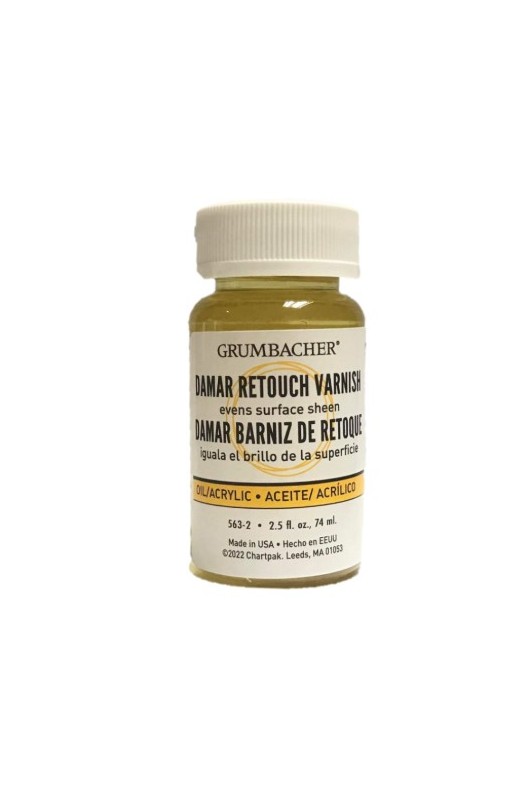 A working varnish for oil painting, Retouch Varnish evens out gloss of unfinished work and revives dry/matte areas. This aids in accurate color comparison. Use in very thin layers. Varnish must be dry before over-painting and is not intended as a final varnish.