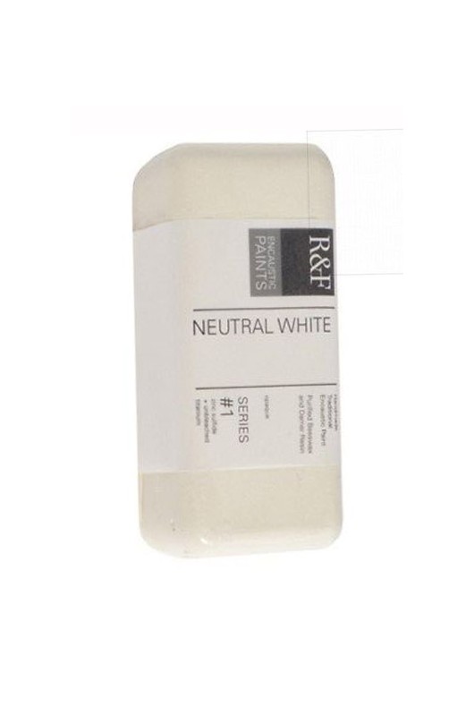Neutral White Encaustic A versatile paint for fine artists, R&F Encaustics are composed of beeswax, damar resin and pigments. In a molten state, it is applied to an absorbent ground and then fused, or re-melted, to acheive a range of effects, from glass-like smoothness to rich, impasto-like textures. Along side Titanium-Zinc, it looks almost brown. With spectrum colors, it looks white and does not tend to "pop" out like Titanium-Zinc. Not a good mixing whiteNeutral White Encaustic A versatile paint for fine artists, R&F Encaustics are composed of beeswax, damar resin and pigments. In a molten state, it is applied to an absorbent ground and then fused, or re-melted, to acheive a range of effects, from glass-like smoothness to rich, impasto-like textures. Along side Titanium-Zinc, it looks almost brown. With spectrum colors, it looks white and does not tend to "pop" out like Titanium-Zinc. Not a good mixing white
