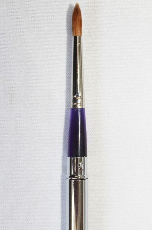 Short clear & transparent purple handle kolinsky round brush. Carry this clever travel/pocket brush with you and your traveling studio will always be ready wherever you go. Metal cover can also use to extend the handle. A Reversible Pocket brushes that can use for outdoor painting. Use for acrylic and watercolor.