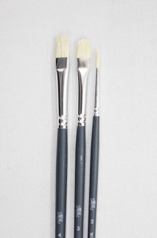 Natural Bristle Round 2 , Filbert 2, Flat 4 Long Handle